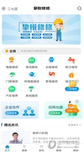 1、为用户打造多元的服务专区,涵盖电路维修、水路维修、厨卫维修、门窗维修等服务内容;