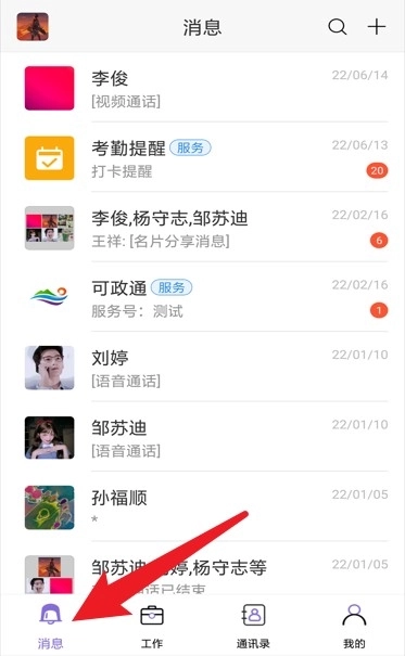 1、进入消息页面后,能查看系统通知以及视频或语音通话的相关内容,还可以快速进入聊天界面。