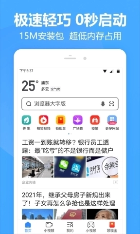 浏览器快搜这款应用,初印象便是清爽利落,运行起来还特别流畅,即便是配置不高的手机也能毫无压力地使用。它是一款纯粹的手机网页浏览工具,在搜索框输入关键词后,就能直接跳转到百度或其他搜索引擎,操作十分便捷。此外,它没有任何广告弹窗,也不存在多余的附加功能,用户只需把常用网站添加到首页,下次点击就能快速访问。比如喜欢看小说、电影的用户,把相关网站添加进去后,打开应用就能直接浏览内容了。