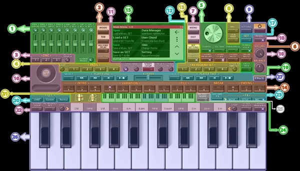键盘组:使用键盘组1至4作为热键更改设置(乐器、调整等),以加快演奏过程。可以通过按住按钮来设置键盘组。