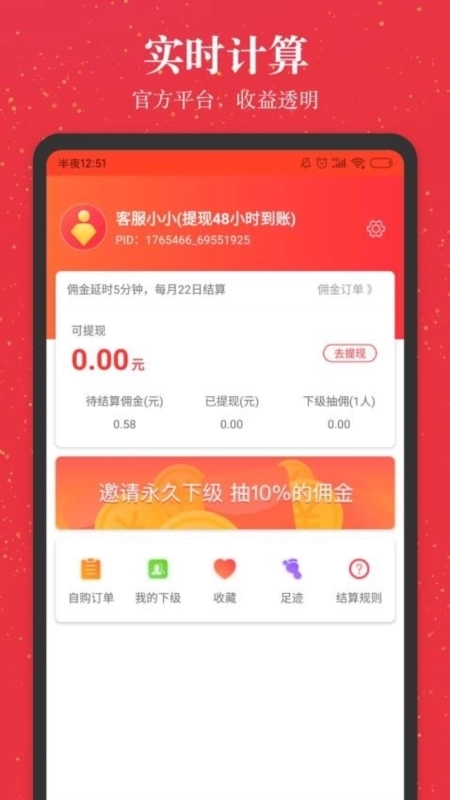 3、可将获得的佣金收益一键提现至个人账户进行管理;