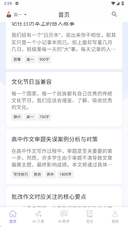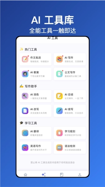 学生:优先展示作文批改、范文学习等功能。