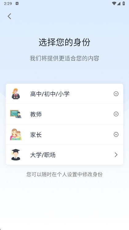 1、身份选择:首次进入时需要挑选身份(如学生、教师、职场人士等),系统会依据所选身份推荐与之相匹配的功能。举例来说: