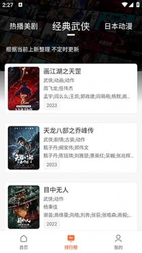 2、点击排行榜,这里会展示近期上线的热门影片内容。