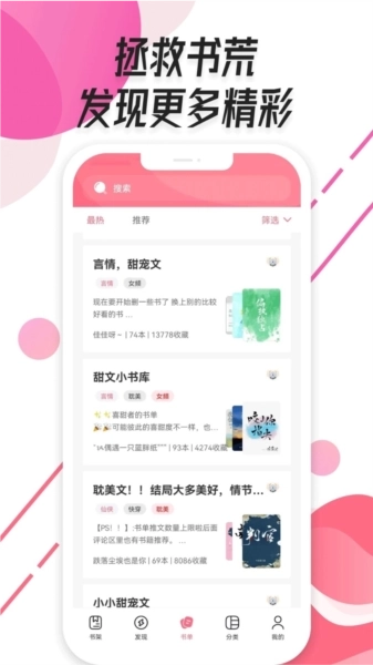 精选榜、收藏版、打赏榜、最新榜等各类榜单滚动更新,让你随时掌握书籍的实时动态。