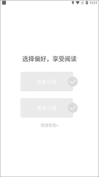 1、安装树莓阅读后,首次进入会询问读者的阅读偏好,不过你也可以选择先随意浏览;