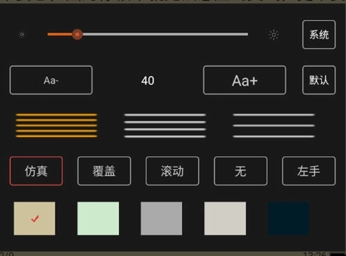 6、点击阅读界面可弹出菜单,通过该菜单能够设置背景和调整字体大小。