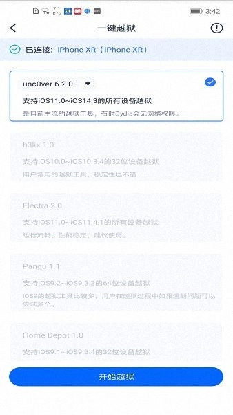 例如能够查看设备详情、查看验机报告、一键完成越狱等操作。