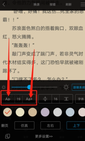 5、在这里我们还能调整字体大小,找到“Aa-”(代表字体减小)和“Aa+”(代表字体增大),中间还有数值作为参考,方便用户调整字体大小。