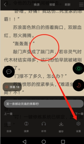 3、在小说阅读界面,我们先点击屏幕中心,再点击右下角的“设置”。