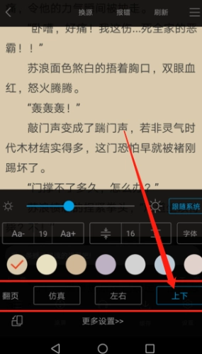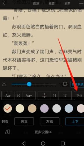 8、我们不仅设置好了小说的上下翻页效果,同时还设置好了小说的字体。