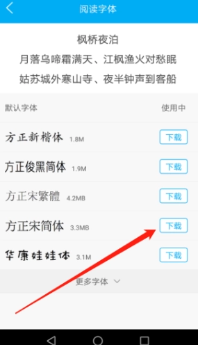 7、进入字体选择界面后,找到自己喜欢的字体,点击其后方的“”,接着点击使用。