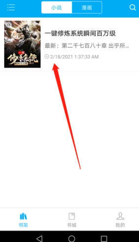 2、我们走到书架中间,找到想要阅读的小说并点击它。