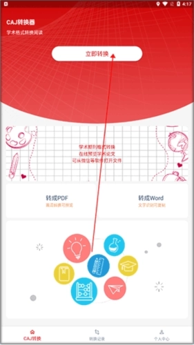 1、先安装好caj转换器,随后进入软件主界面,点击“立即转换”按钮。