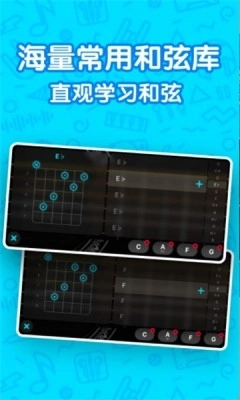 1、这款软件配备了专门的指法教学模块与调节器,不仅提供涵盖多种技巧的演奏手法指导,还设有和弦面板,支持用户根据自身需求进行自定义调节。