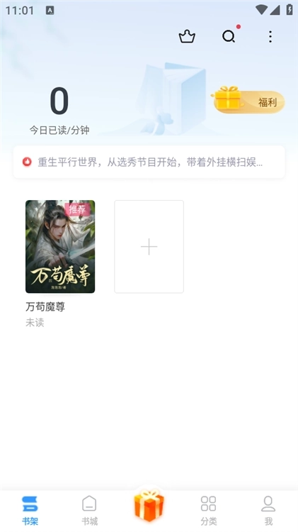 3、此外还有书架功能,这里收录了你阅读过或者正在追更的小说。