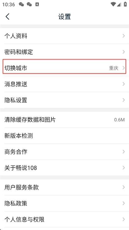 2、在设置页面找到并点击切换城市;