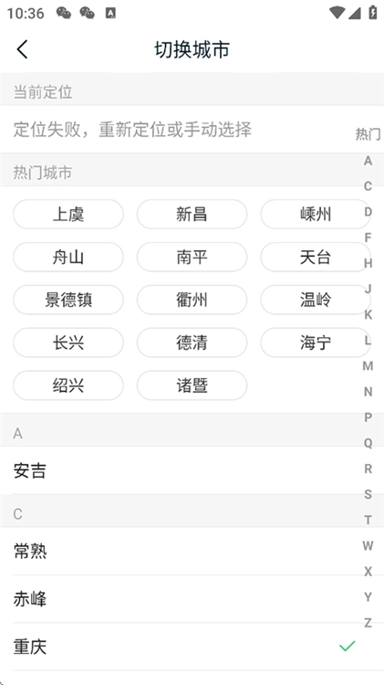 3、您既能自动定位当前所在城市,也可在下方手动进行选择。
