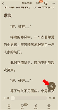 1、打开一本你想听的小说,进入阅读页面后,轻点屏幕中央区域(如下方红框所示位置),就能调出功能菜单
