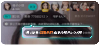 当战队等级达到1级及以上后,每次升级都会在全寨直播间推送升级广播。