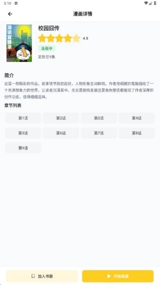 2、查看你喜欢的漫画,查看简介,浏览章节。