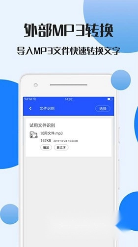 2、导入音频转文字,支持导入外部mp3音频文件,将其转换为文字内容,无论是歌曲还是演讲,都能快速准确地完成转换。