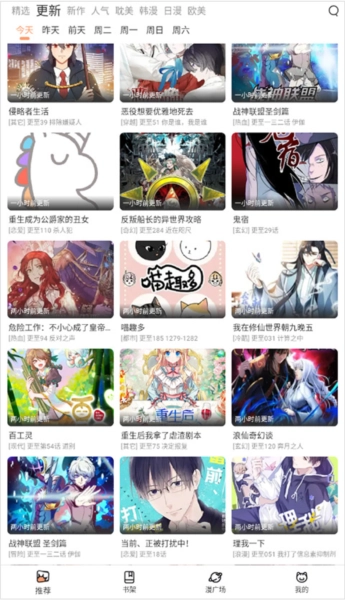 1、在推荐页面能够看到多种类型的漫画,点击你感兴趣的漫画即可。