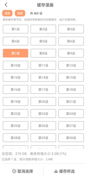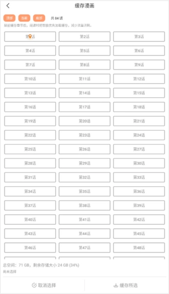 1、同样是在漫画详情页界面点击下方的“缓存”