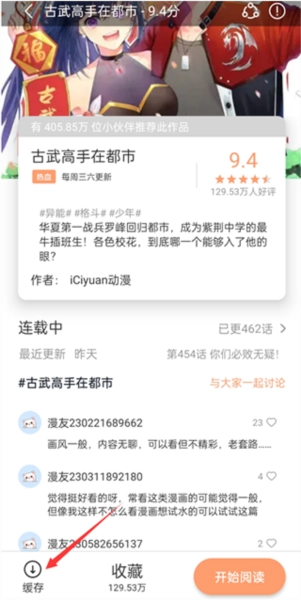 1、找到想要缓存的漫画,点击进去;