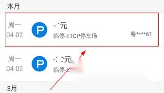 2、然后就可以看到每次的停车记录了。