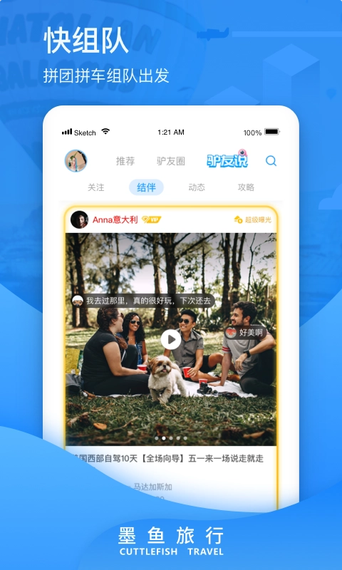 1、墨鱼旅行的用户既能发布自由行邀约,也能参与拼团出游。