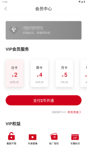 2、你可以选择日卡、周卡、月卡等不同类型的会员服务,点击“立即开通”按钮就能完成开通。