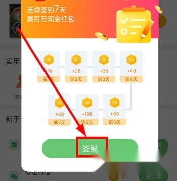 2、然后点击每日签到;