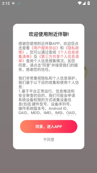 1、首次启动应用时,需在弹出的窗口页面点击同意用户协议,之后才能进入应用的主界面。