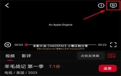2、进入播放界面后,点击右上角的【TV】按钮就能完成投屏操作。