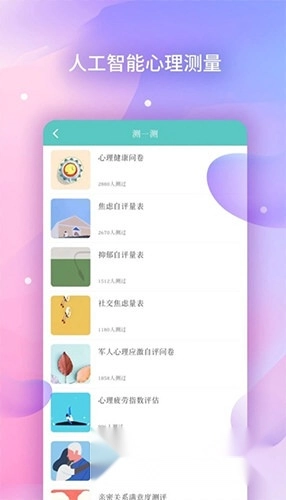 3、该软件还能引导用户倾诉心理困扰与情绪,帮助用户更清晰地洞察自身内心世界,进而探寻解决问题的方法。用户可借助简单的问卷来了解自己的心理状态。