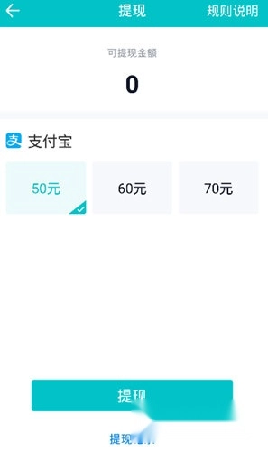 3、进入【我的】页面后点击【提现】选项,查看当前可提现的金额,确认后再次点击【提现】按钮即可完成操作。需要注意的是,只有当金额达到50元及以上时,才能够进行提现。
