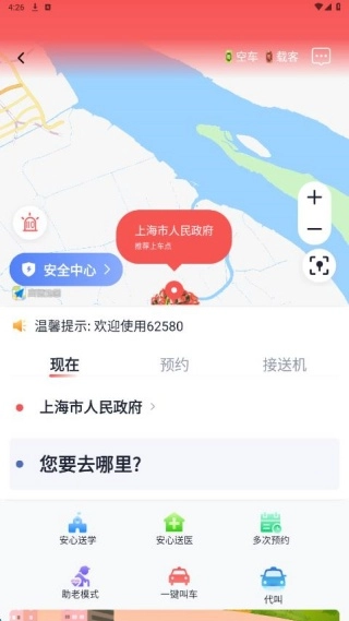 2、首页选择立即打车功能,可以实现流畅下单服务;