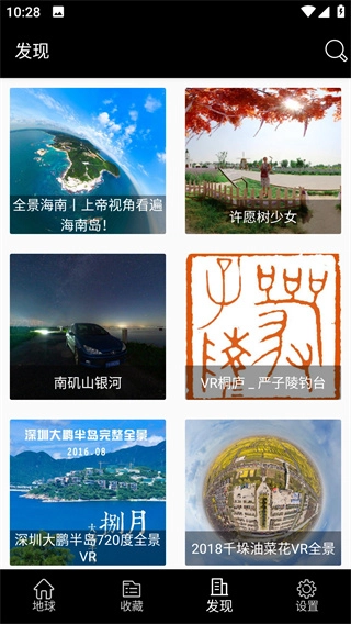 2、点击“发现”,进入发现页面后,就能看到这里展示了众多地域的VR全景。