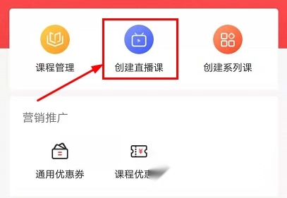 1、进入老师身份相关功能界面,接着选择并点击“创建直播课”功能选项。