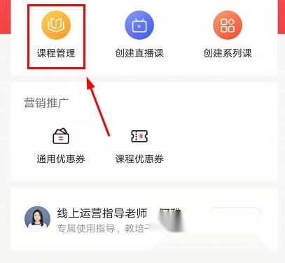 1、在个人中心点击“课程管理”功能,即可进入网页版直播界面。
