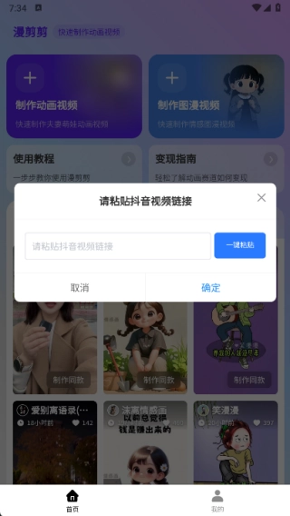 3、选择抖音视频链接提取功能进入,接着粘贴音视频链接,点击确定按钮,再按照提示完成制作操作。