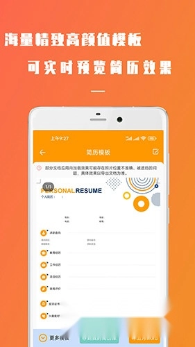 招聘简历简易制作是一款能帮助用户快速便捷创建个人简历的应用程序。它已支持大量招聘个人简历的制作,提供精良模板供用户挑选,大幅提高了用户制作简历的效率。这款应用有着简洁易用的界面,用户可轻松填写个人信息、教育经历、职业技能等内容,助力用户打造出既专业又美观的简历。