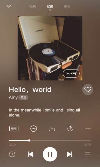 您可以选择标准音质、高品质HQ或无损SQ(非会员仅能使用标准音质)