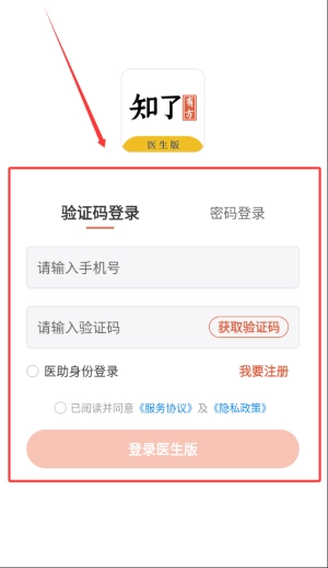 2、选择验证码或密码登录,进入医生版。