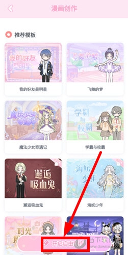 3、在这里可以选择模板,也可以点击下方的开启自由创作。