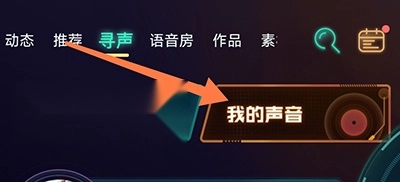 1、第一步是打开小戏精应用,接着在主页面找到并切换至寻声栏目,然后点击“我的声音”选项。