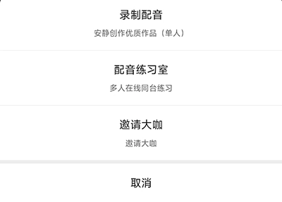 3、弹出选择框后,按照自身需求挑选合适的配音方式就能完成配音操作。