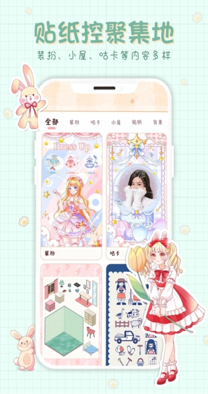 贴纸控聚集地,手绘、动漫、咕卡等风格多样。贴纸、胶带、背景等分类细致应有尽有。