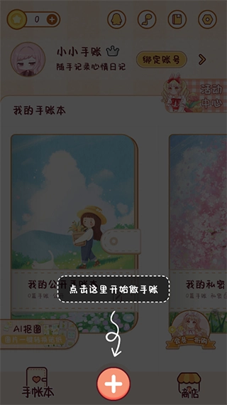 1、进入即可点击底部红色按钮来进行手账的制作了